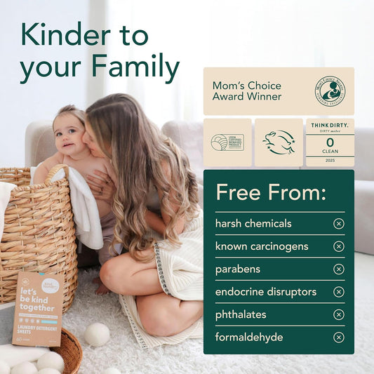 Kind Laundry Detergent Sheets with Stain-Fighting Enzymes - Plant Powered Eco-Friendly Laundry Soap Sheets - Home or Travel Laundry Detergent Fragrance Free, 60 Loads (Mom's Choice Award Winner)