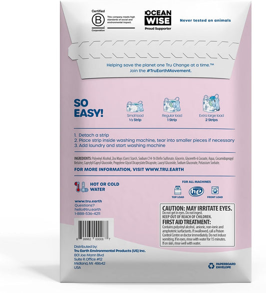 Tru Earth Hypoallergenic Baby Laundry Detergent Sheets/Strips for Sensitive Skin, 64 Count, Up to 128 Loads: Fragrance Free Baby Detergent Laundry Newborn, Children