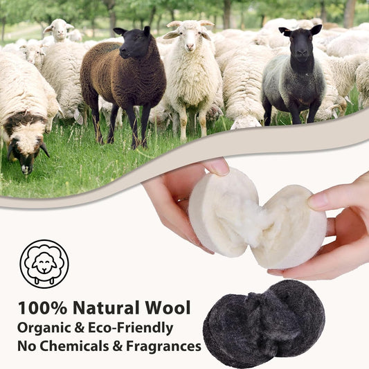 Daily Treasures 2.75"Wool Dryer Balls 12 Pack-Organic Wool Laundry Balls for Dryer,Natural Fabric Softener for Sensitive Skin,Reusable Laundry Dryer Balls Reduce Wrinkles&Drying Time(White & Black)