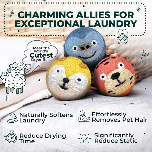 Wool Dryer Balls XL, Cute Cat Face Shape Handmade Dryer Balls Laundry Reusable, Fabric Softener Ball, Shorten Drying Time, Organic Wool - Dry 1000+ Loads(3 Pack Cat Shape)
