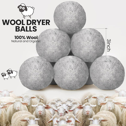 Organic Wool Dryer Balls: Eco-Friendly & Chemical-Free | Our Anti-Entanglement Reusable Balls Eliminate Wrinkle Static | 6-Pack XL Dryer Balls for Laundry is Made with New Zealand Wool (Gray)