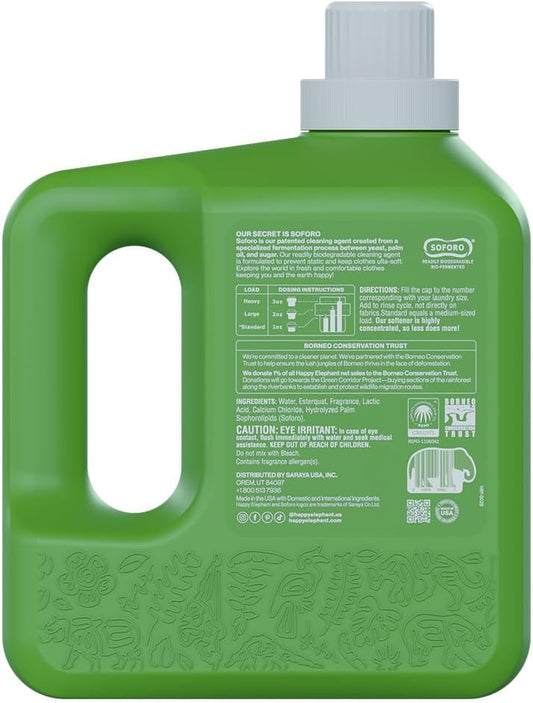 Happy Elephant Fabric Softener, White Tea & Fig Scent, Natural Biodegradable Liquid Fabric Softener, Plant Based, Softens Clothes & Reduces Static, Gentle on Skin, HE Compatible, 64 Fl Oz, 1 Pack