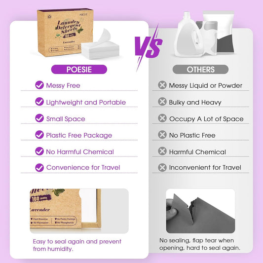 Poesie Travel Laundry Detergent Strips 40 Sheets Liquidless Laundry Soap Sheet for Travel Dorm Home Lavender
