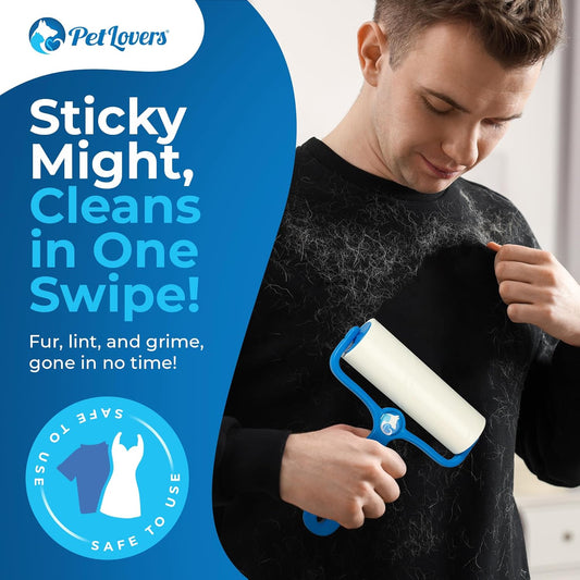 PetLovers Large Lint Roller with 3 Refills – 400 Total Sheets for Tackling Pet Hair, Extra Large Floor and Carpet Roller for Homes with Pets, Perfect for Floors, Furniture, and Loving Pet Owners