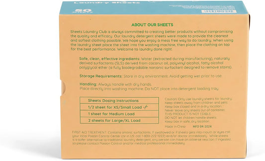 Sheets Laundry Club Laundry Detergent Sheets, 100 Loads - Fragrance Free Scent, Eco-Friendly, Quick-Dissolving Formula, Hypoallergenic, Septic Safe, Plastic-Free Packaging - 50 Sheets
