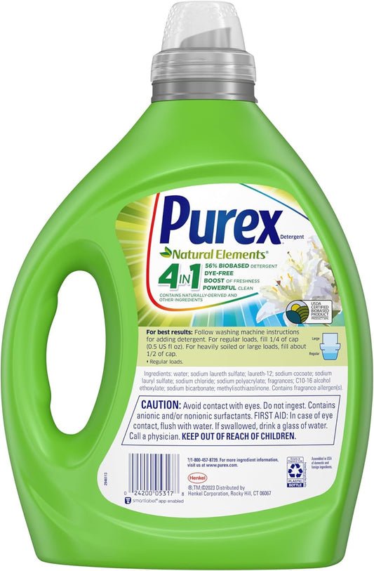 Purex Liquid Laundry Detergent, Ultra Concentrated, Natural Elements Linen & Lilies, 82.5 Ounce, 165 Loads