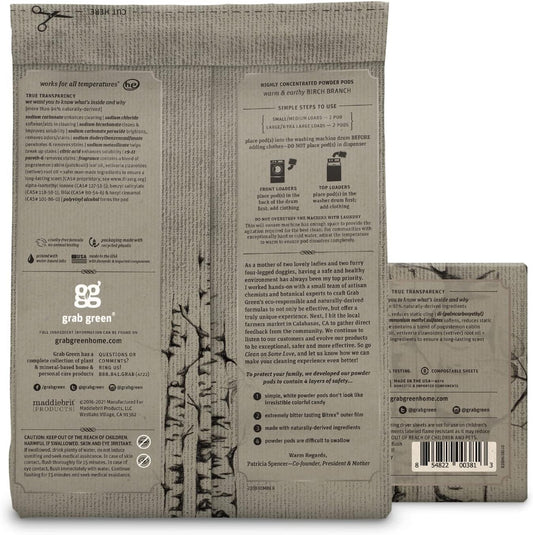 Grab Green Stoneworks Laundry Detergent Pods and Dryer Sheet Bundle, 50 Count Pods and 80 Dryer Sheets, Birch Branch Scent, Plant and Mineral Based Laundry Care Set