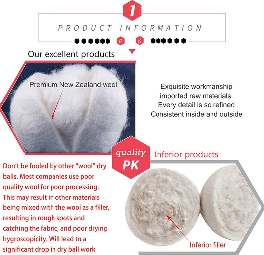 Roowest 46 Pcs Wool Dryer Balls Set Reusable Laundry Wool Balls with Muslin Bags Fabric Softener Anti Wrinkle Anti Static Saving Energy and Time