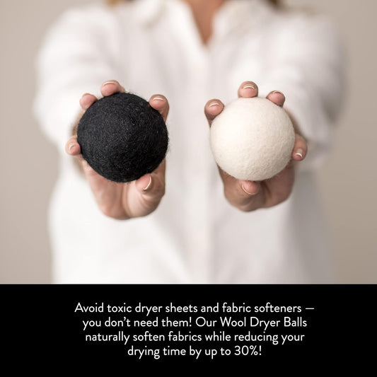 Molly's Suds Wool Dryer Balls | XL, Premium Organic Fabric Softener, Hypoallergenic, Hand-Felted, Reusable, Reduce Drying Time | Black, Set of 6