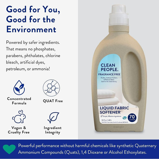 The Clean People Liquid Fabric Softener - Softens & Removes Static Cling - Vegan (50 Fl Oz, Fragrance Free)