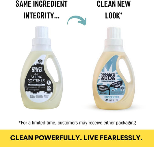 Molly’s Suds Fabric Softener Liquid for Sensitive Skin | Vinegar-Powered, Infused with Essential Oils | Fights Static, Reduces Wrinkles, Deodorizes | Unscented, 50 Loads
