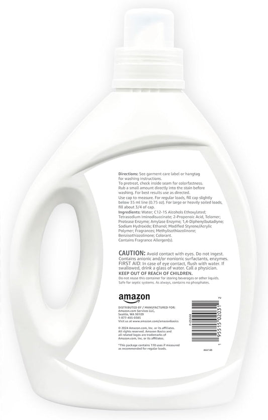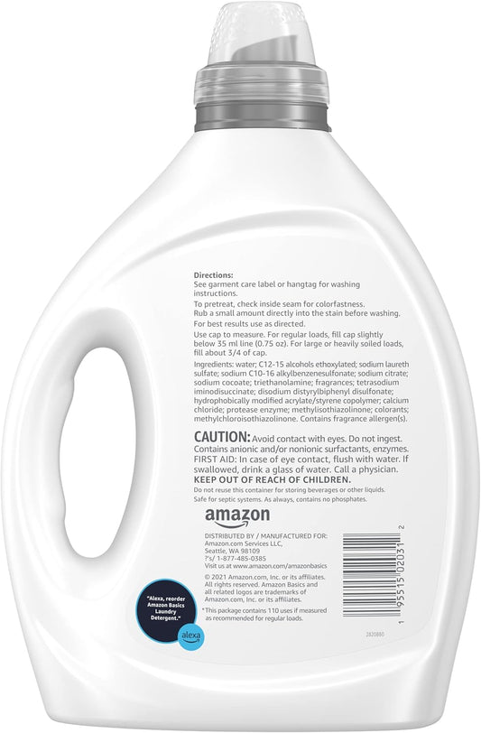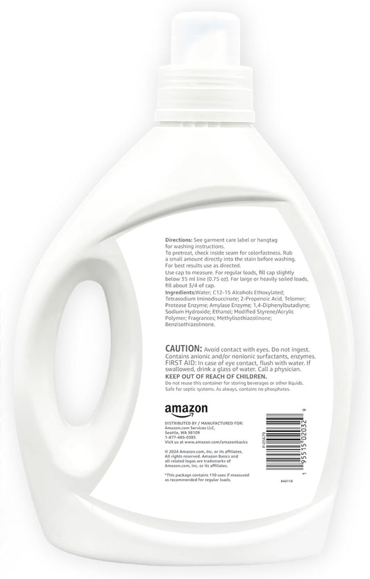 Amazon Basics Laundry Detergent Liquid, Concentrated, Fresh Scent, 110 Loads, 82.5 Fl Oz (New Packaging)