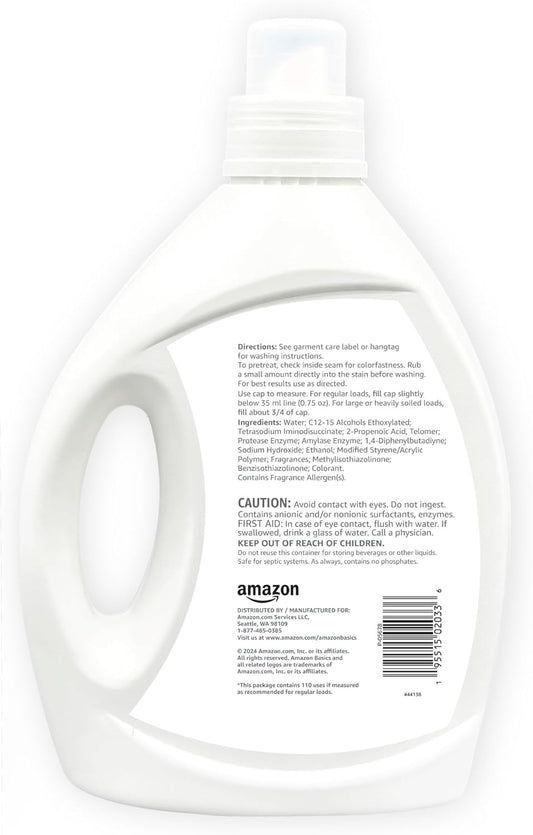 Amazon Basics Concentrated Liquid Laundry Detergent, Clean Linen, 110 loads, 82.5 Fl Oz (Previously Solimo)