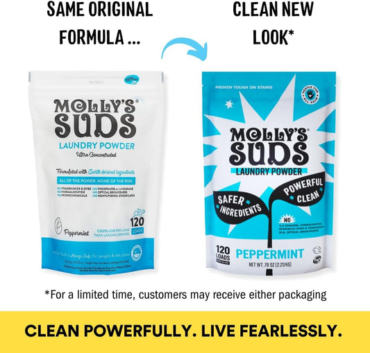 Molly's Suds Original Laundry Detergent Powder | Clean Laundry Detergent Powder for Sensitive Skin | Simple, Effective Ingredients, Stain Fighting | 120 Load (Peppermint)