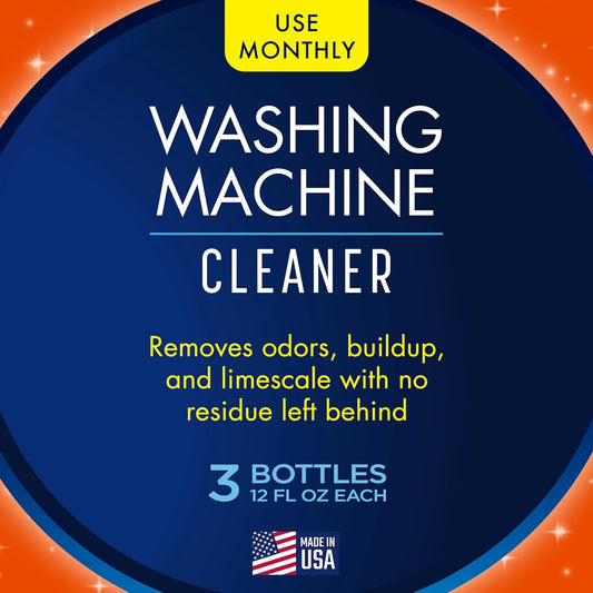 Glisten Washing Machine Cleaner, Helps Remove Odor, Buildup, and Limescale, Fresh Scent, Made in the USA, 12 Ounce Bottle, 3-Pack