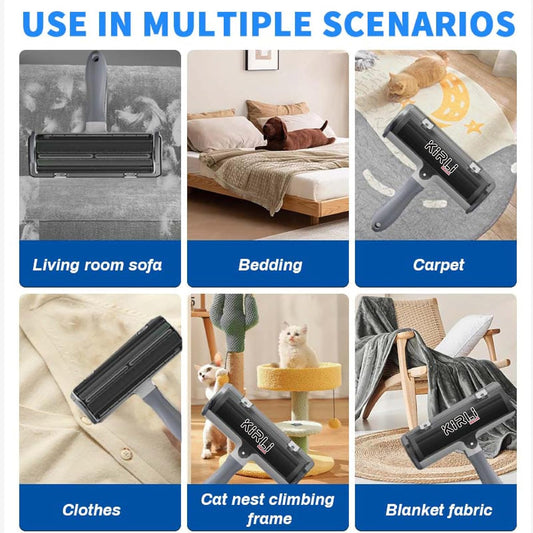 KIRLI Pet Hair Roller, Fur Remover Tool with Built-in Fur bin, Reusable Lint Roller for Pet Hair, Multi-Surface Furniture Clothing, Couch, Carpet, Bedding Cat and Dog Hair Remover (Black)
