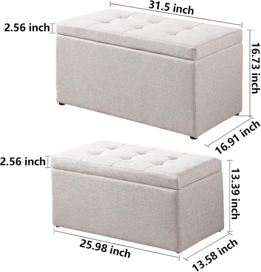 Storage Ottoman Bench with 2.56-inch Thick Seat, 31.5 inch Nesting Ottoman Set of 2, Hinged Flip Top Bench with Storage for Living Room, Bedroom, Beige