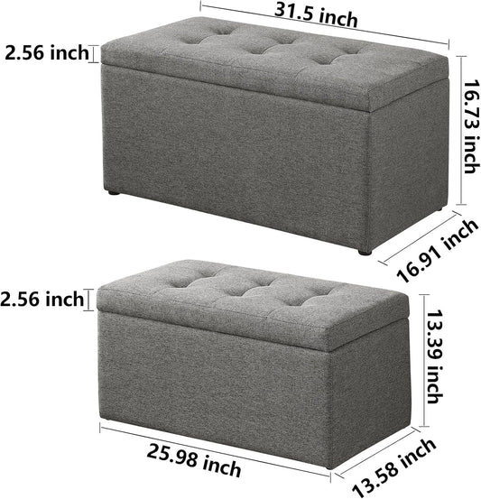 Storage Ottoman Bench with 2.56-inch Thick Seat, 31.5 inch Nesting Ottoman Set of 2, Hinged Flip Top Bench with Storage for Living Room, Bedroom, Grey