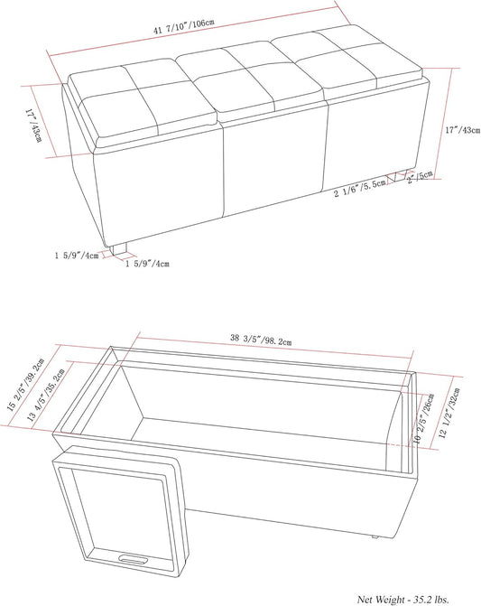 SIMPLIHOME Avalon 35 inch Wide Contemporary Rectangle 5 Pc Storage Ottoman in Tanners Brown Vegan Faux Leather, Assembled, for the Living Room, Entryway and Family Room