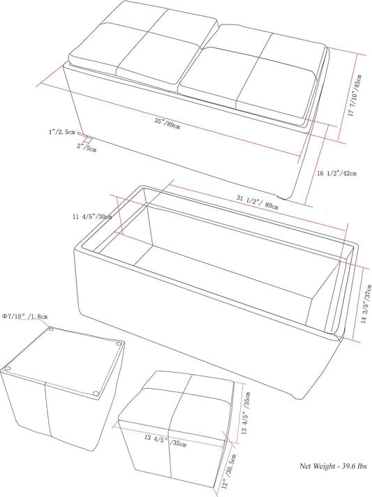 SIMPLIHOME Avalon 35 inch Wide Contemporary Rectangle 5 Pc Storage Ottoman in Midnight Black Vegan Faux Leather, Assembled, for the Living Room, Entryway and Family Room