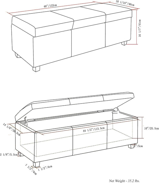 SIMPLIHOME Avalon 42 inch Wide Contemporary Rectangle Storage Ottoman in Natural Linen Look Fabric, Assembled, for the Living Room, Entryway and Family Room