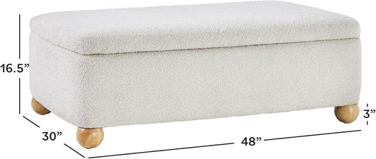 Walker Edison Linley Contemporary Large Storage Bouclé Ottoman with Wood Legs, Ivory
