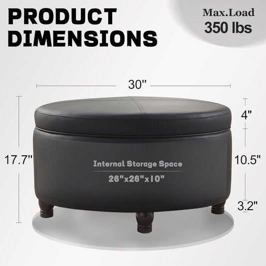 30-Inch Round Storage Ottoman, Modern Ottoman Coffee Table with Removable Top for Living Room, Bedroom, Office (Black)