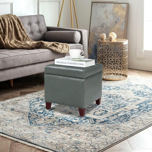 Adeco Bonded Leather Square Tufted Cubic Cube Footstool, 18" Height Storage Ottomans, with Lid, Cement Grey