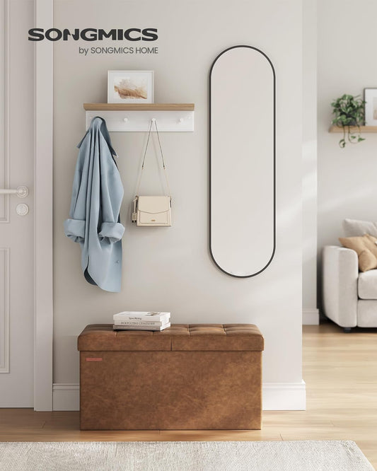 SONGMICS MAZIE Collection - 43 Inches Storage Ottoman Bench with Flipping Lid, Storage Chest with Iron Frame Support, Load 660 lb, for Living Room, Bedroom, Synthetic Leather, Brown ULSF75BR