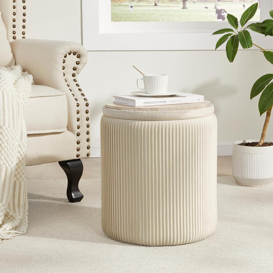 Big Round Ottoman with Storage Set of 2,Upholstered Velvet Vanity Stool for Makeup Multifunctional Foot Rest Coffee Table Padded Seat Tufted Ottomans for Living Room&Bedroom(White)