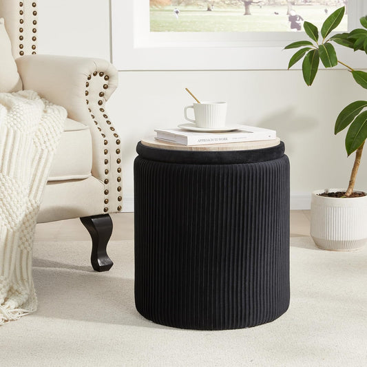 Royal Windsor Round Ottoman with Storage Set of 2,Vanity Stool with Storage for Bedroom, Ottoman Coffee Table,Small Velvet Foot Stool for Living Room, Black