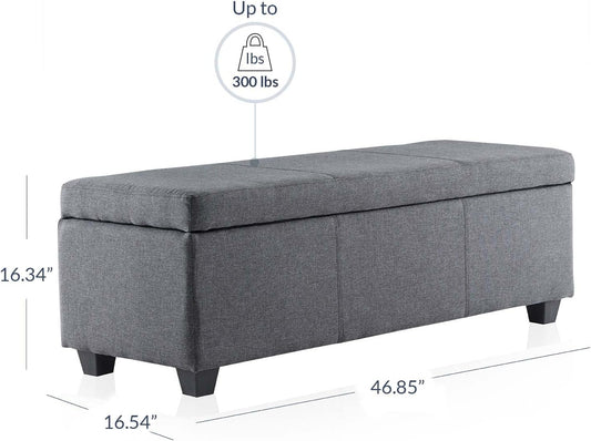 BELLEZE Storage Ottoman, 47 Inch Bench Bedroom Bench with Safety Close Hinge, Extra Long Ottoman with Storage for Living Room, Entryway, Hallway, Foot Rest, Support 300lbs - Gray