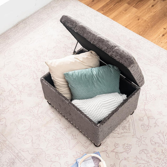 Joveco Storage Ottoman Foot Rest Stool, 24" Velvet Footstool Bench for Living Room Bedroom, Light Grey