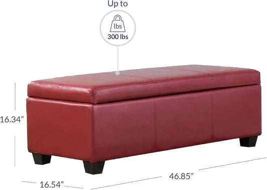 BELLEZE Storage Faux Leather Ottoman, 47 Inch Bench Bedroom Bench with Safety Close Hinge, Extra Long Ottoman with Storage for Living Room, Entryway, Hallway, Foot Rest, Support 300lbs - Red