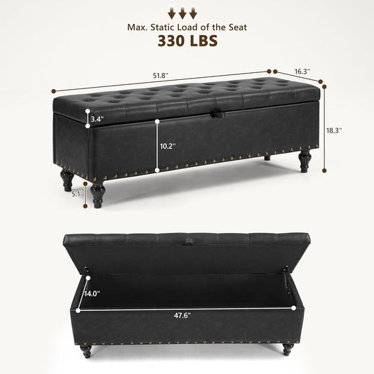 51.8’’ Storage Ottoman Bench, Faux Leather Ottoman with Storages, Window Benches Holds up to 330lbs, Upholstered Storage Bench for Bedroom, Living Room, Entryway and Family Room, Black