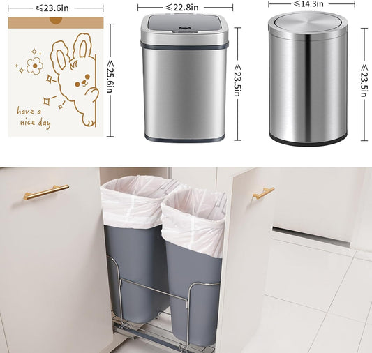 13 Gallon Trash Bags with Cute Rabbit Printed & Drawstring, Tear-Resistant Tall Kitchen Garbage Bags, Heavy-Duty Large Trash Can Liners for Home/Office, 50 Counts