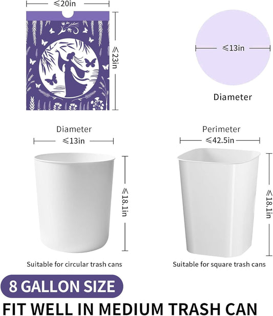 VOK 8 Gallon Trash Bags with Butterfly Printed & Sweet Wormwood Scent, Drawstring Medium Garbage Bags, Tear-Resistant & Fragrant Trash Can Liners, Trash Bags 8 Gallon for Home/Office, 25 Counts