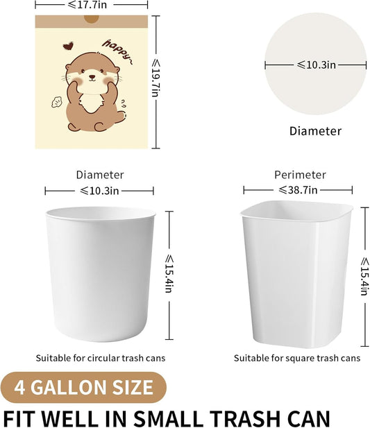 VOK 4 Gallon Trash Bags with Otters Printed, Drawstring Small Garbage Bags, Tear-Resistant & Odor-Control Bathroom/Kitchen Trash Can Liners, Bathroom Trash Bags with Secure Tie, 110 Counts