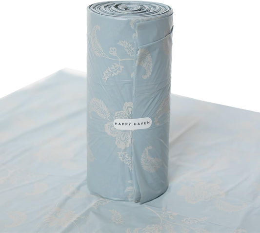 Happy Haven Bathroom Trash Bags for 2,3,4 Gallon Trash Can, Small Garbage Bags - Bedroom & Bathroom, Decorative Cute Wastebasket Liner - 50 Count (Light Blue Botanical)