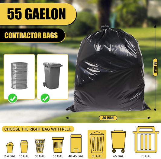 Heavy Duty Extra Large 55 Gallon Black Trash Bags, 1.92 Mil Industrial Garbage Bags for Construction, Waste Disposal,Commercial,Home Use,Out Door 20 Count