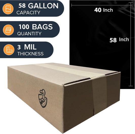 ToughBag 55-60 Gallon Heavy Duty Trash Bags - Contractor Grade, 3 Mil, 40 * 58, Tear Resistant, Gusseted Design for Industrial & Yard Waste(100 packs)