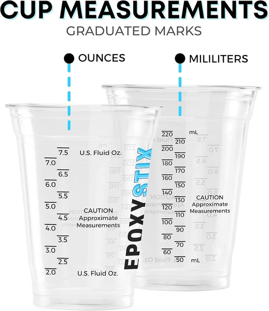[50 Pack] NEW SIZE 12oz Graduated Mixing Cups - Durable PET, Clear Measurement Markings in oz, mL and cups - For Resin, Paint, Mixing and Crafts