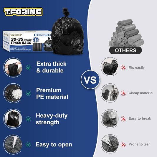 30-35 Gallon Trash Bags Heavy Duty 1.5 Mil - 35" x 37" 100 Count Large Black Garbage Bags 30+ Gallon Strong Plastic Trash Can Liners for Home Kitchen Commercial Lawn and Leaf