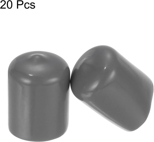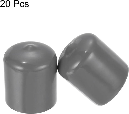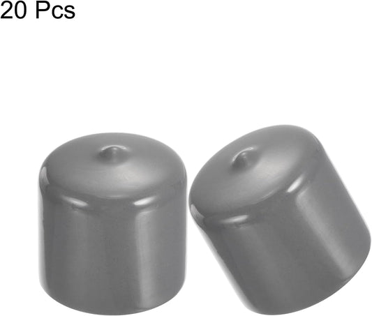 uxcell 20pcs Rubber End Caps Protective Caps 20mm ID Vinyl PVC Round Tube Bolt Cap Cover Screw Thread Protectors, Light Grey