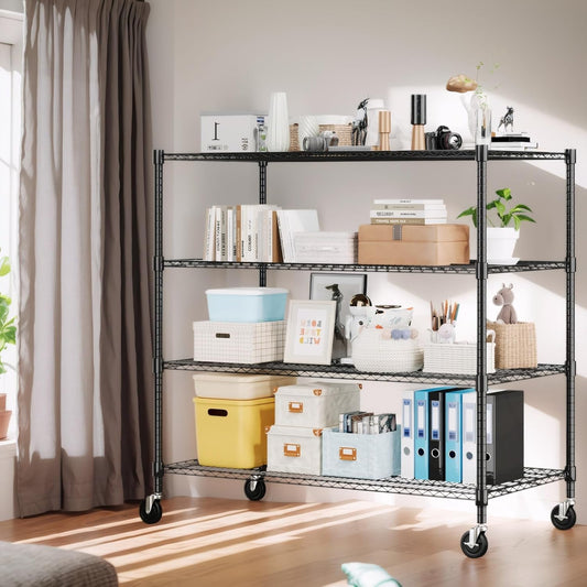 Himimi Storage Shelves 60" W Wire Shelving with Wheels 2600LBS Heavy Duty Metal Shelves for Storage, 4-Tier Adjustable Wire Rack Shelving Garage Shelving Kitchen Storage Shelves 24" Dx60 Wx72H, Black