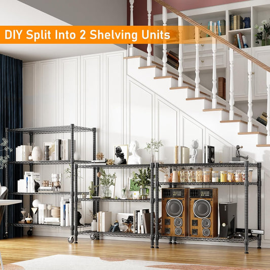 Himimi 82" H Storage Shelves 5 Tier Metal Shelving Adjustable Wire Shelf with Wheels, Heavy Duty Shelving for Garage Kitchen Pantry Bathroom Laundry,18" D*48" W*82" H, Black