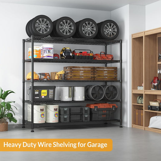 Himimi Storage Shelves 60"W Wire Shelving with Wheels 3250LBS Heavy Duty Metal Shelves for Storage, 5-Tier Adjustable Wire Rack Shelving Garage Shelving Kitchen Storage Shelves 24"Dx60"Wx82"H, Black