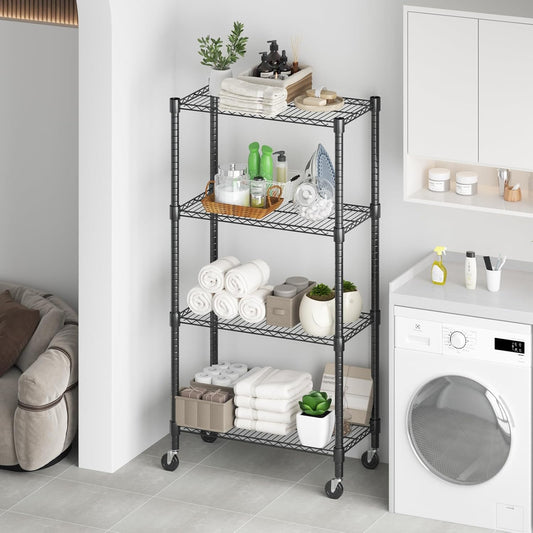 Himimi Storage Shelves with Wheels, 4-Tier Heavy Duty Steel Wire Rack Storage Shelving, Adjustable Metal Storage Shelves for Garage Kitchen Pantry Bathroom Laundry 18" D*60" W*72" H, Black