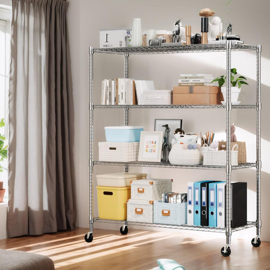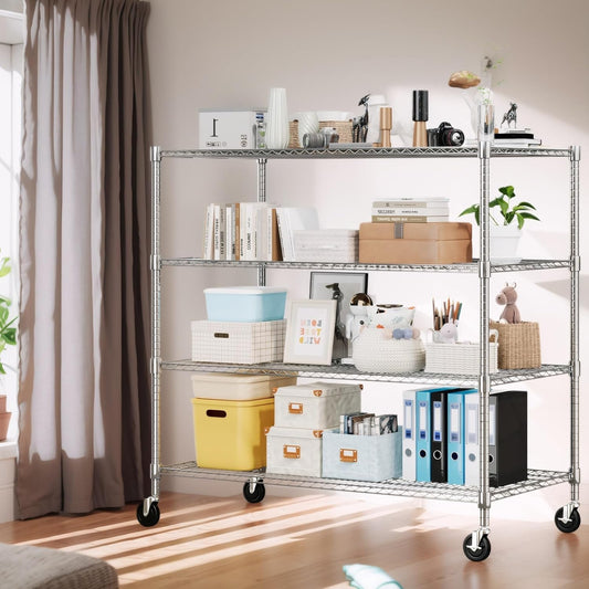 Himimi Storage Shelves 60"W Wire Shelving with Wheels 2600LBS Heavy Duty Metal Shelves for Storage, 4-Tier Adjustable Wire Rack Shelving Garage Shelving Kitchen Storage Shelves 24"Dx60"Wx72"H, Silver