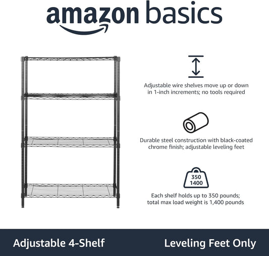 Amazon Basics 4-Shelf Adjustable Heavy Duty Steel Wire Rack Storage Shelving Organizer for Kitchen, Garage, 36" L x 14" W x 54" H, Black